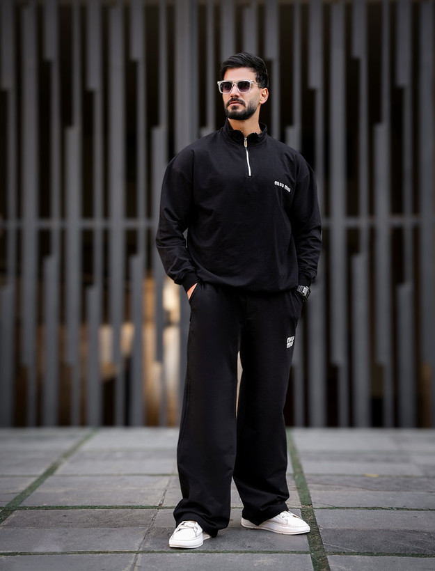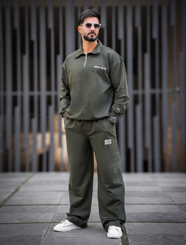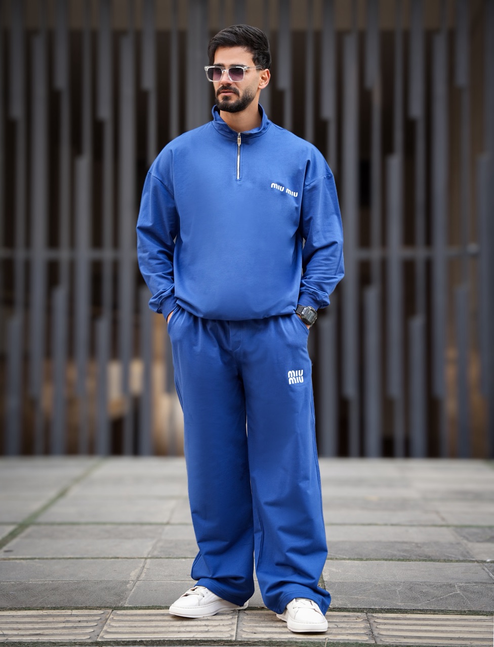 ست اسپرت دورس نیم زیپ و شلوار بگ پارچه پنبه دو نخ MIU MIU