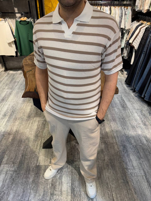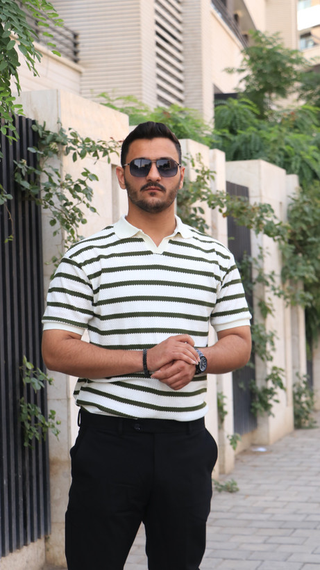تیشرت بافت یقه دار از بافت تمام نخ بسیار خنک و سبک دوخته شده